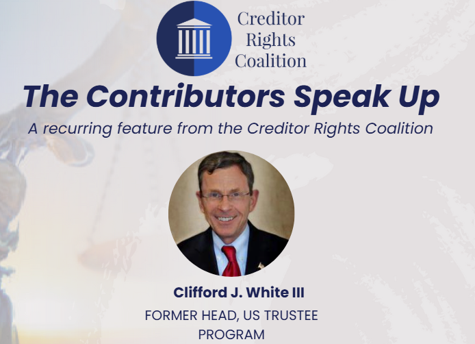 *Cliff White was the head of the Justice Department bankruptcy “watchdog,” the U.S. Trustee Program, for 17 years until his retirement in 2022.
