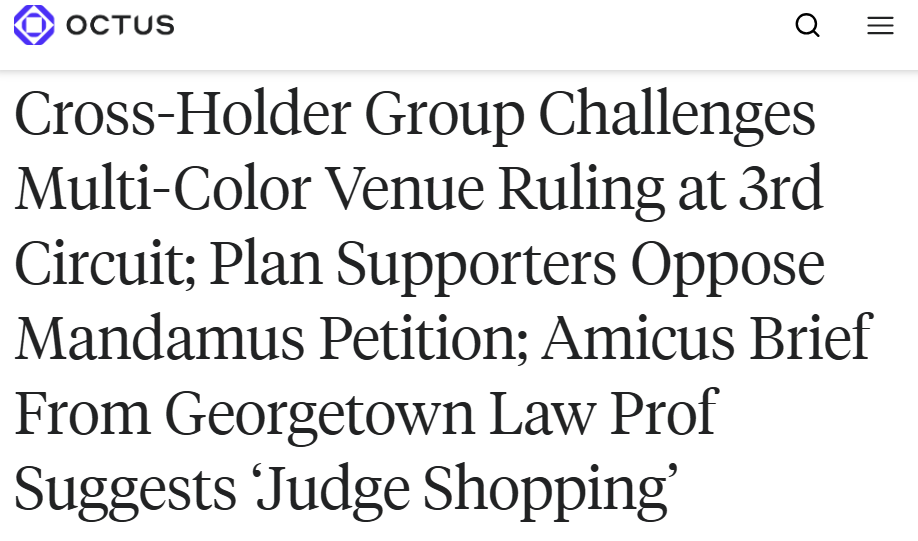 Although there is a lot to disagree with in Judge Kaplan’s opinion -- such as reading legislative inaction as Congressional consent (DOJ historically rejects such use of legislative history), taking a narrow reading of the “interests of justice” standard to exclude consideration of the integrity of the bankruptcy system, and reaching a perplexing conclusion that it was too late to consider discretionary transfer even though venue objections were raised before the first day hearings – he issued a clear challenge to Congress.