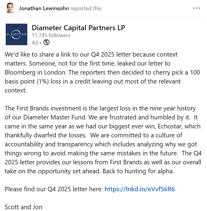 surprise, surprise, surprise... an October 2024 vintage LME files for bankruptcy within 18 months. This time in front of Judge Hall (NJ). We are hopeful newbie Judge Hall's prior commercial experience representing lenders will give excluded creditors a fair shot at pursuing their claims.